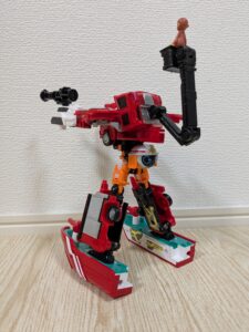 特徴: 消防車の長いクレーンアームに加え、消防艇と合体することで、より大きく、複雑なフォームへの変形が可能になります。
