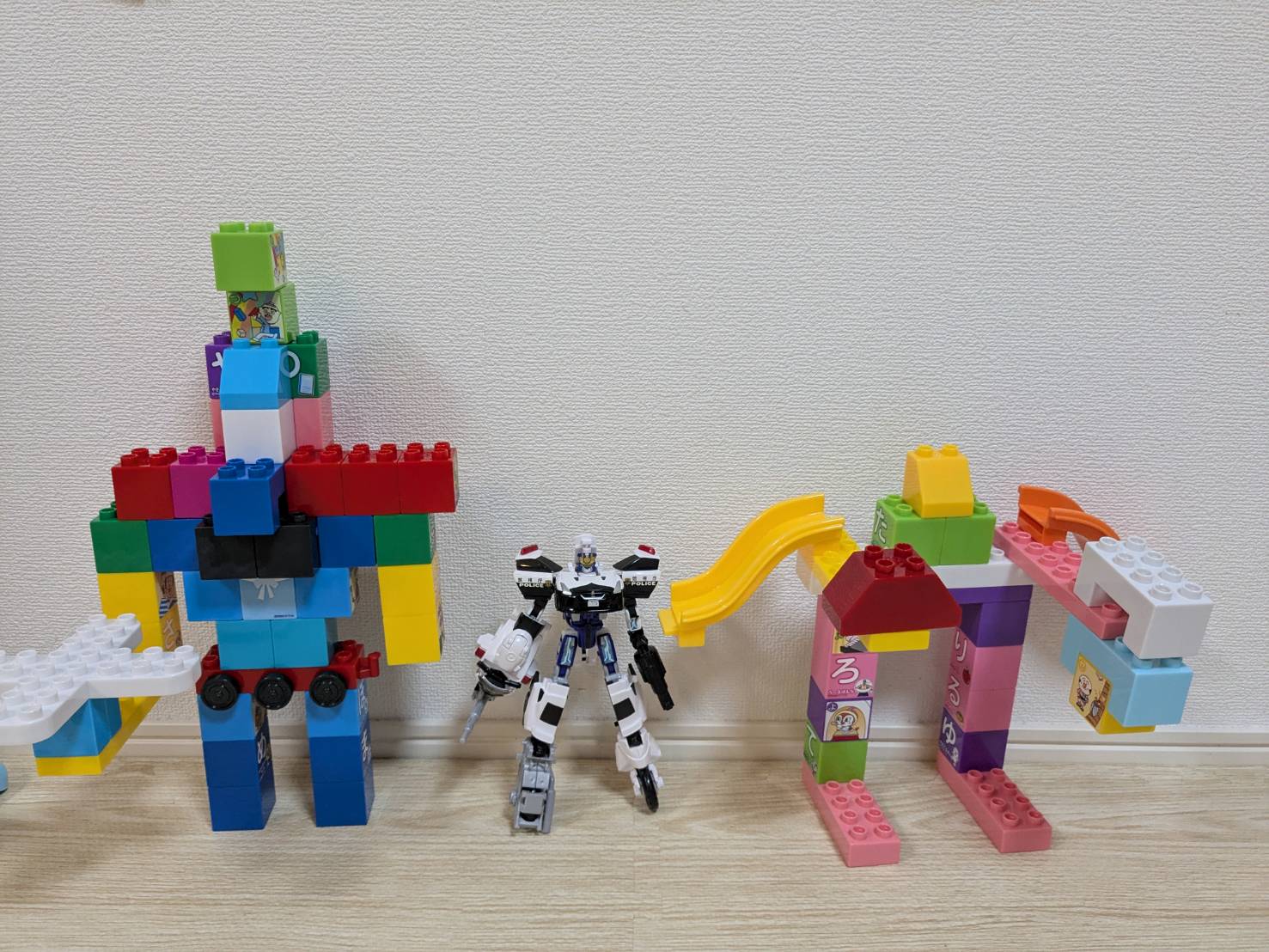 - ポリスブレイバーの合体に刺激されたのか、家にあるアンパンマンのブロックラボを使って、オリジナルのジョブレイバーを作り始めました。